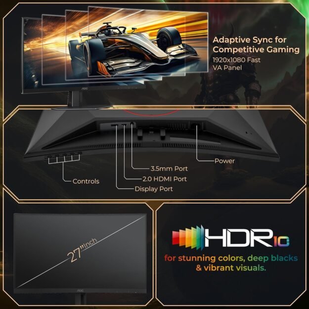 The AOC Gaming C27G4ZE is a turbocharged 27-inch gaming monitor built for speed demons and competitive gamers. Featuring a 1500R curved VA panel, it wraps around your field of view while delivering an ultra-high **280Hz refresh rate** (via DisplayPort) and a rapid 0.3ms (MPRT) response time. This combination eliminates motion blur and input lag, providing a decisive advantage in fast-paced shooters.