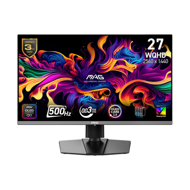 The MSI MAG 272QP QD-OLED X50 is an elite 26.5-inch gaming monitor that delivers competitive performance with a 500Hz refresh rate. Powered by a next-generation QD-OLED panel, it delivers a sharp WQHD (2560×1440) resolution, absolute color precision (99% DCI-P3), and deep, inky blacks. The near-instant 0.03ms (GtG) response time ensures zero motion blur, making it the ultimate weapon for professional esports athletes.